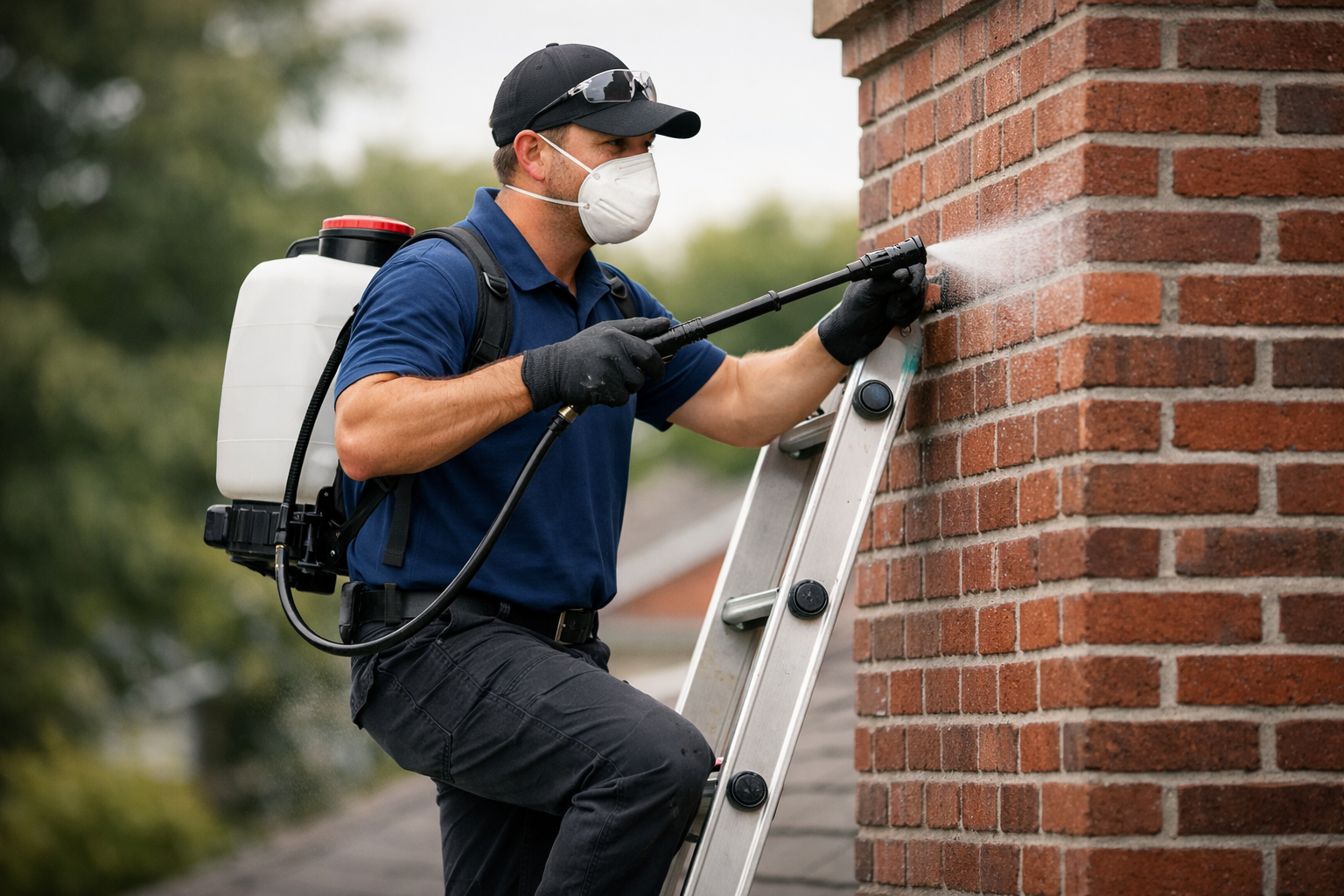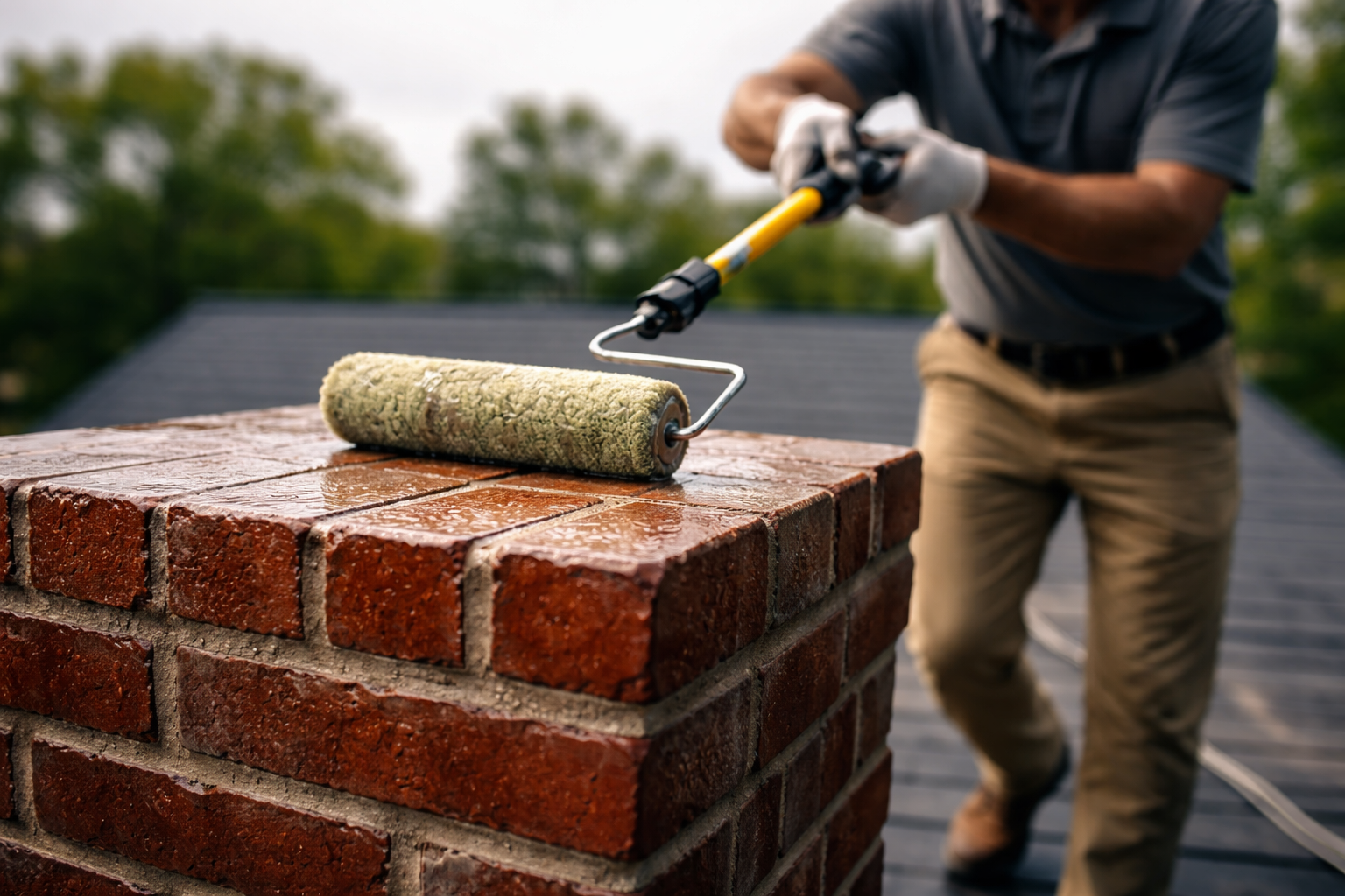 Before applying waterproofing materials, we clean the chimney surface to remove dirt, debris, and buildup.